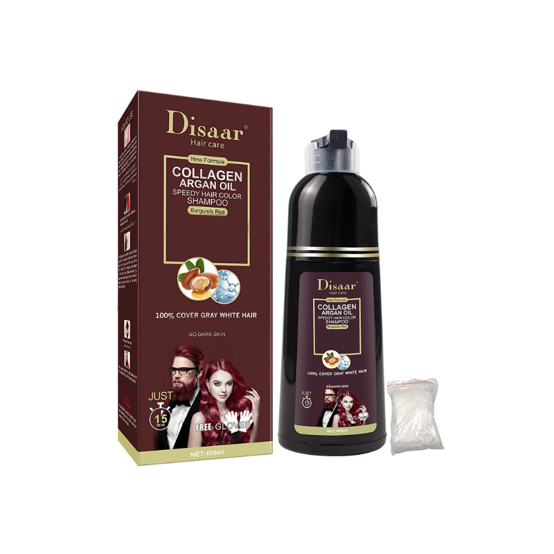 Champú Colorante Tinte Disaar Collagen & Argan Oil Rojo Burdeos 400 ml – Color intenso y nutrición profunda